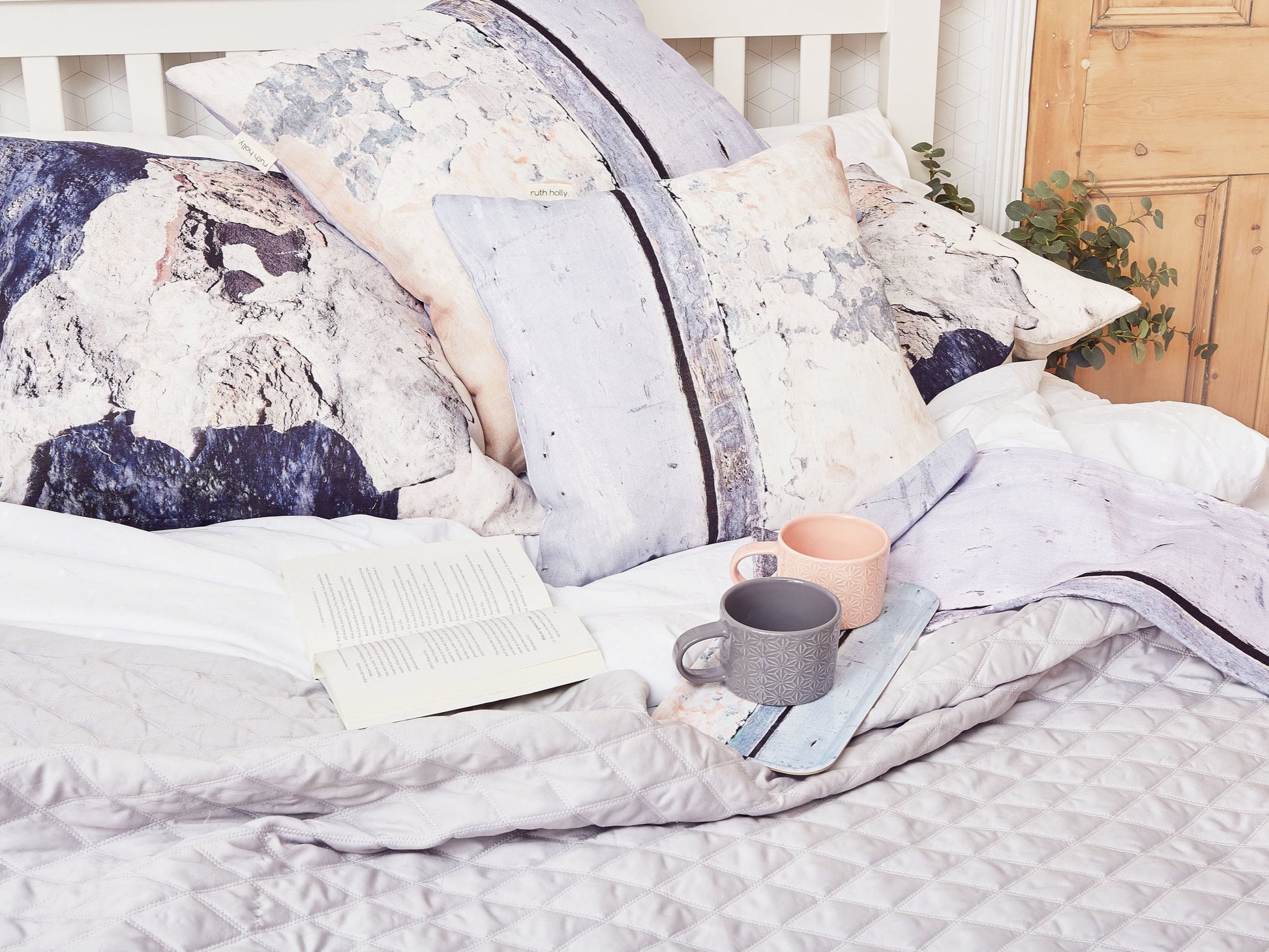 Head to the shore for coastal inspired tranquil colours - blue hues, soft pink sun bleached skies and sandy greys feature on this gorgeous cushion.