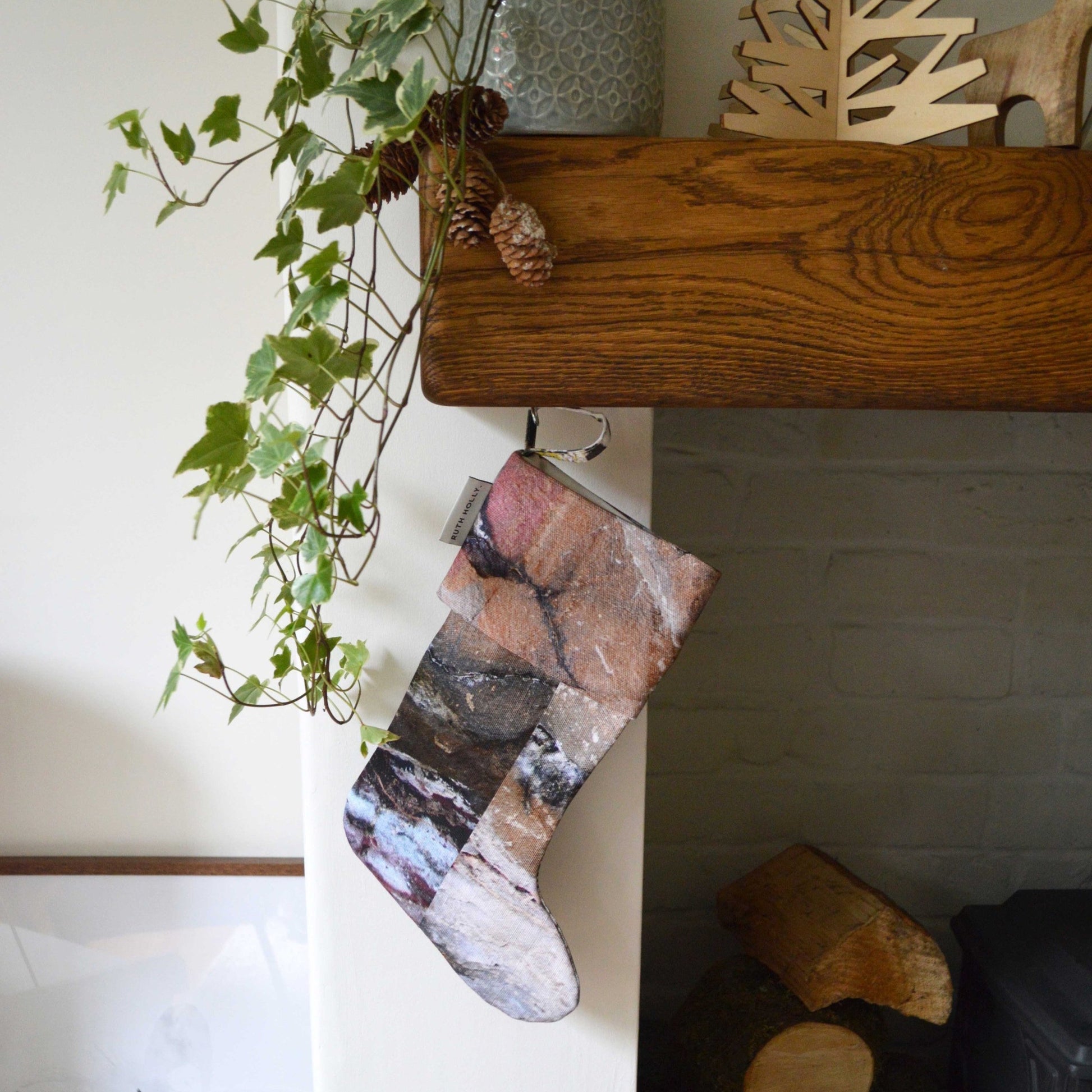 A classic one-of-a-kind Handmade Christmas Stocking, named Earth ‘half boot’ as it captures our timeless Earth design in rusty red hues, warm pinks and deep chocolate brown, with a snowy white, ‘lighter’ patterned cuff. A modern twist on a truly traditional keepsake, subtle and earthy creating the ultimate contemporary Christmas decor. Perfect to hang on the mantlepiece, or as a decorative festive accessory.