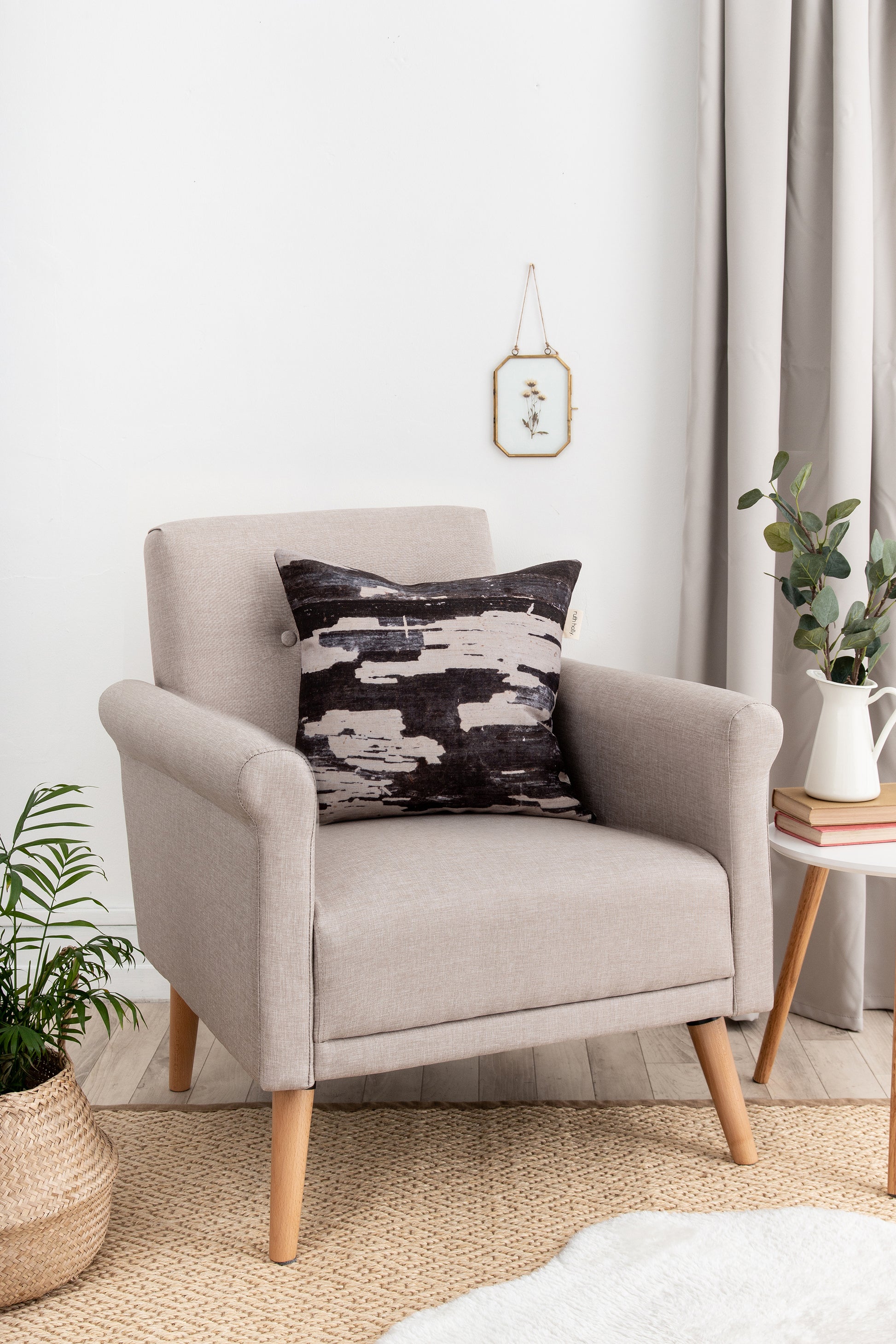 From our debut Signature collection, the ‘Monochrome’ linen cushion in black, natural and charcoal grey tones, provides a striking addition to any home. A statement piece of art, creating a dramatic yet organic feel.