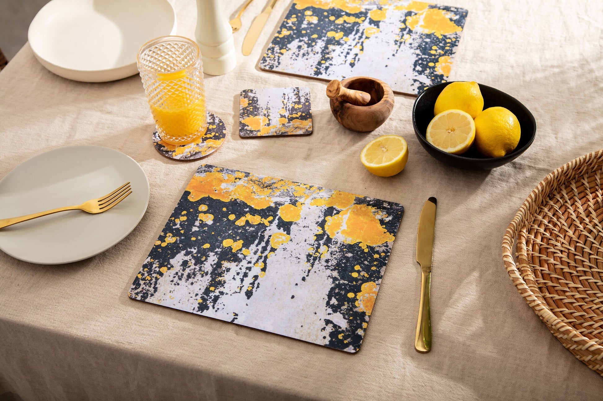 The Nomad Splash Rectangle Placemat, Set of Four, Charcoal Grey and Yellow