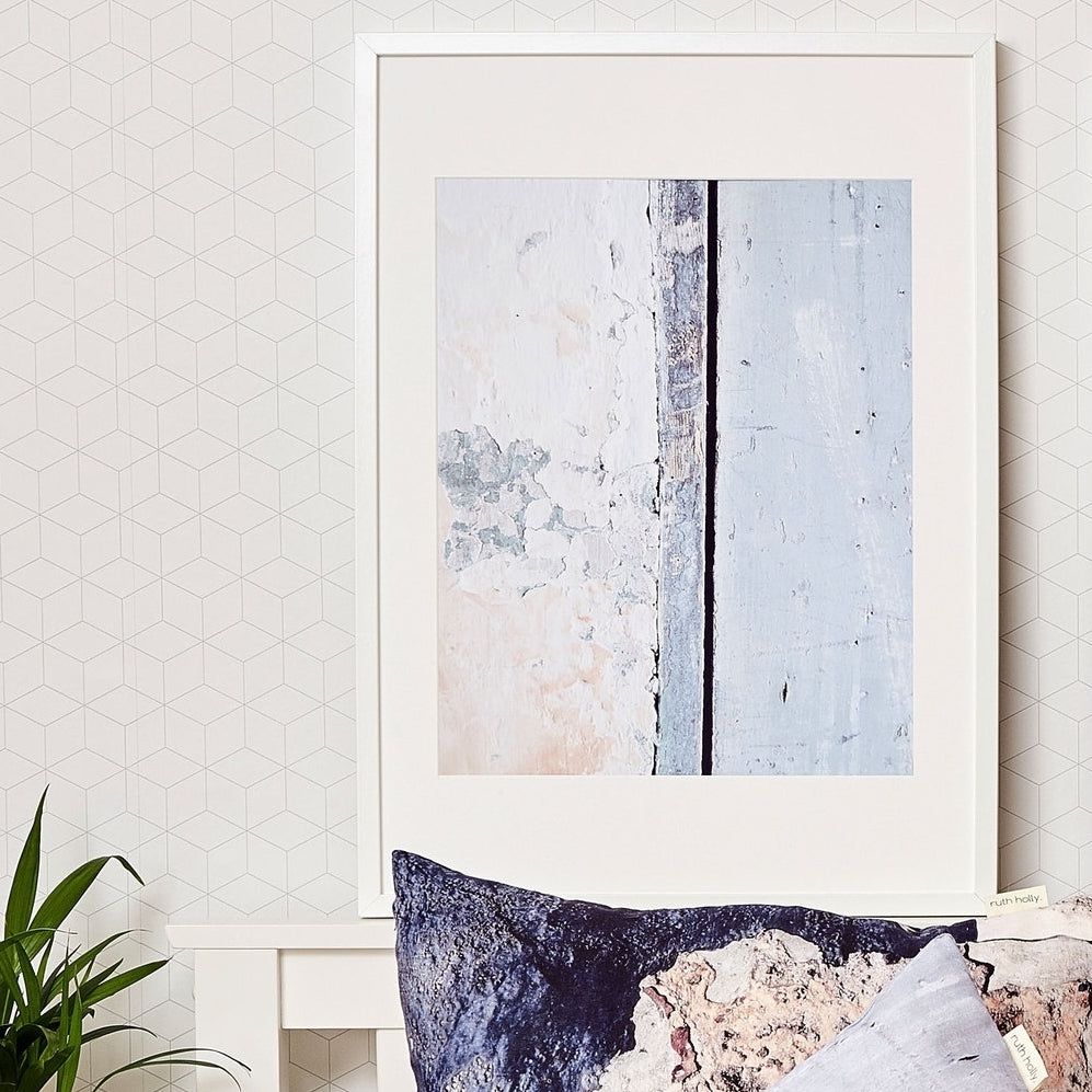 Soft Pink and Blue Coastal Wall Art Print - 'Aspect Stripe'