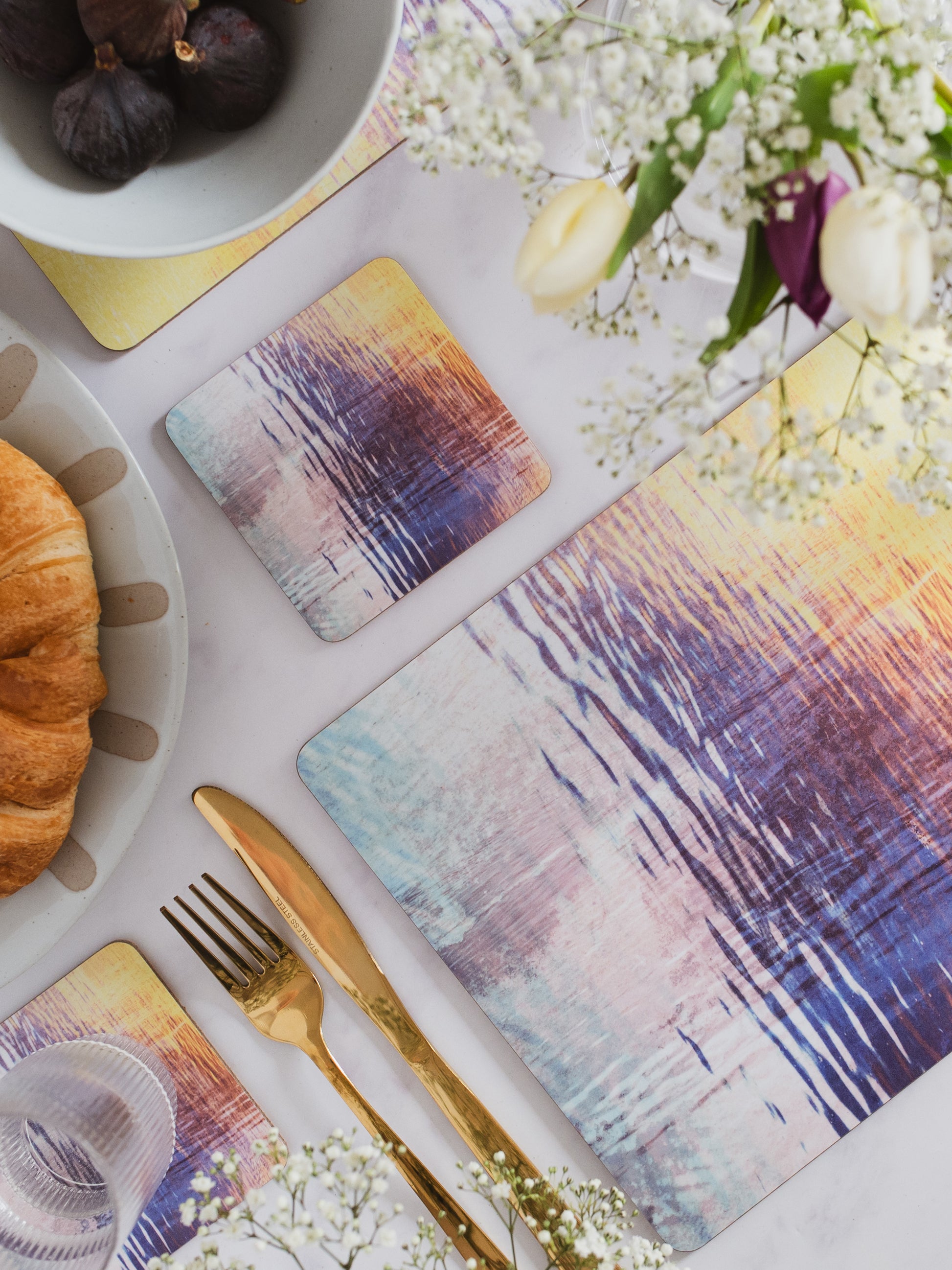 As part of our Limited Edition Serene collection, introducing the enchanting 'Escape' design. Inspired by thoughtful daydreams and ethereal twilights walks. The colours bleed and blend in an abstract painterly way, that evoke escapism.