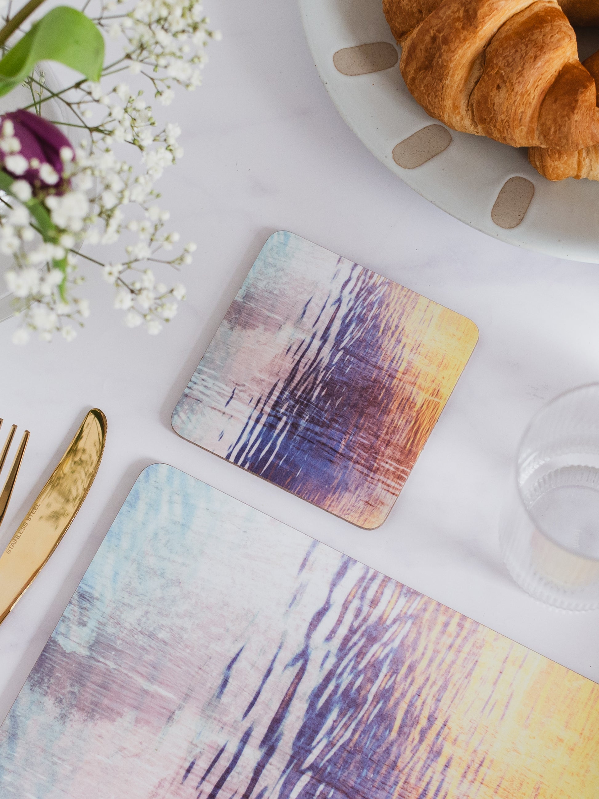 As part of our Limited Edition Serene collection, introducing the enchanting 'Escape' design. Inspired by thoughtful daydreams and ethereal twilights walks. The colours bleed and blend in an abstract painterly way, that evoke escapism.