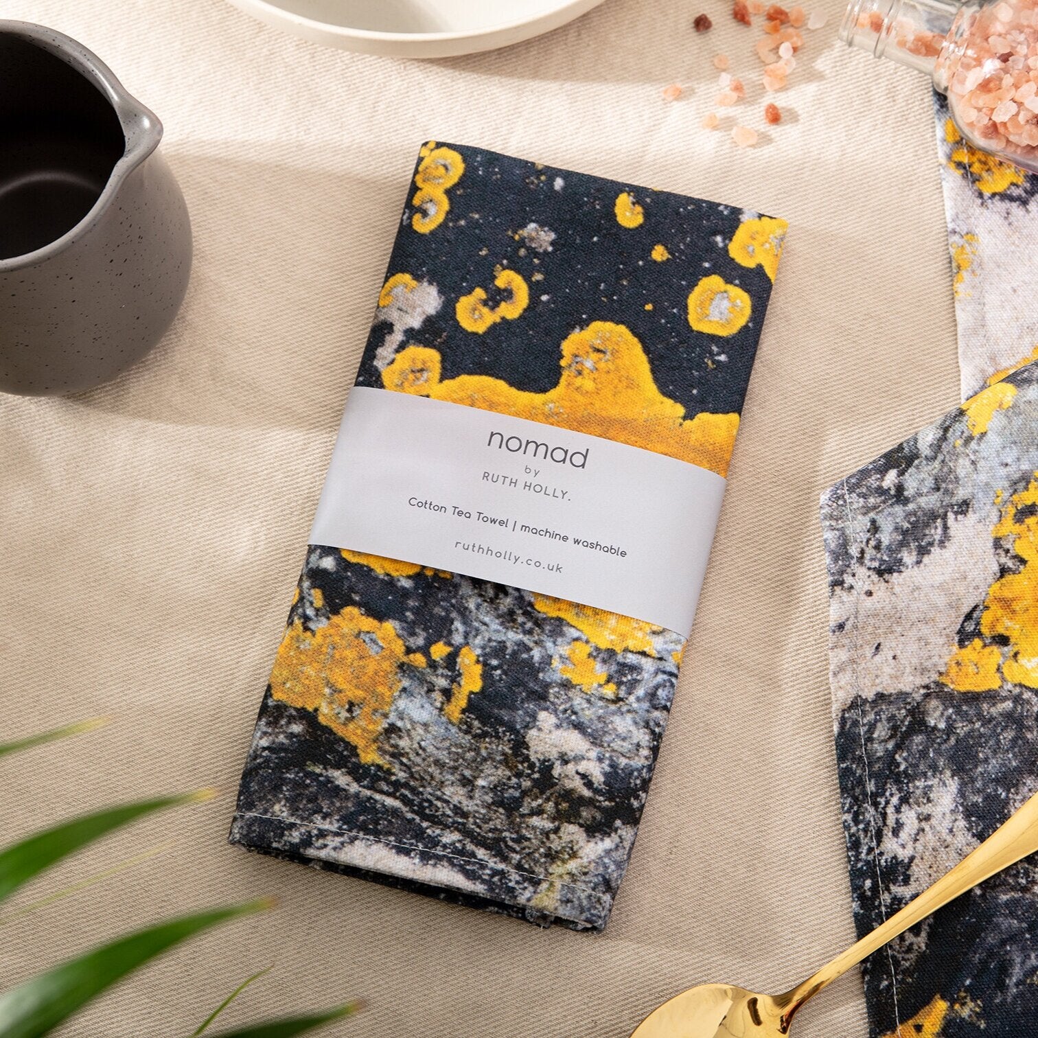 The Nomad Splash Cotton Tea towel, Charcoal Grey and Yellow