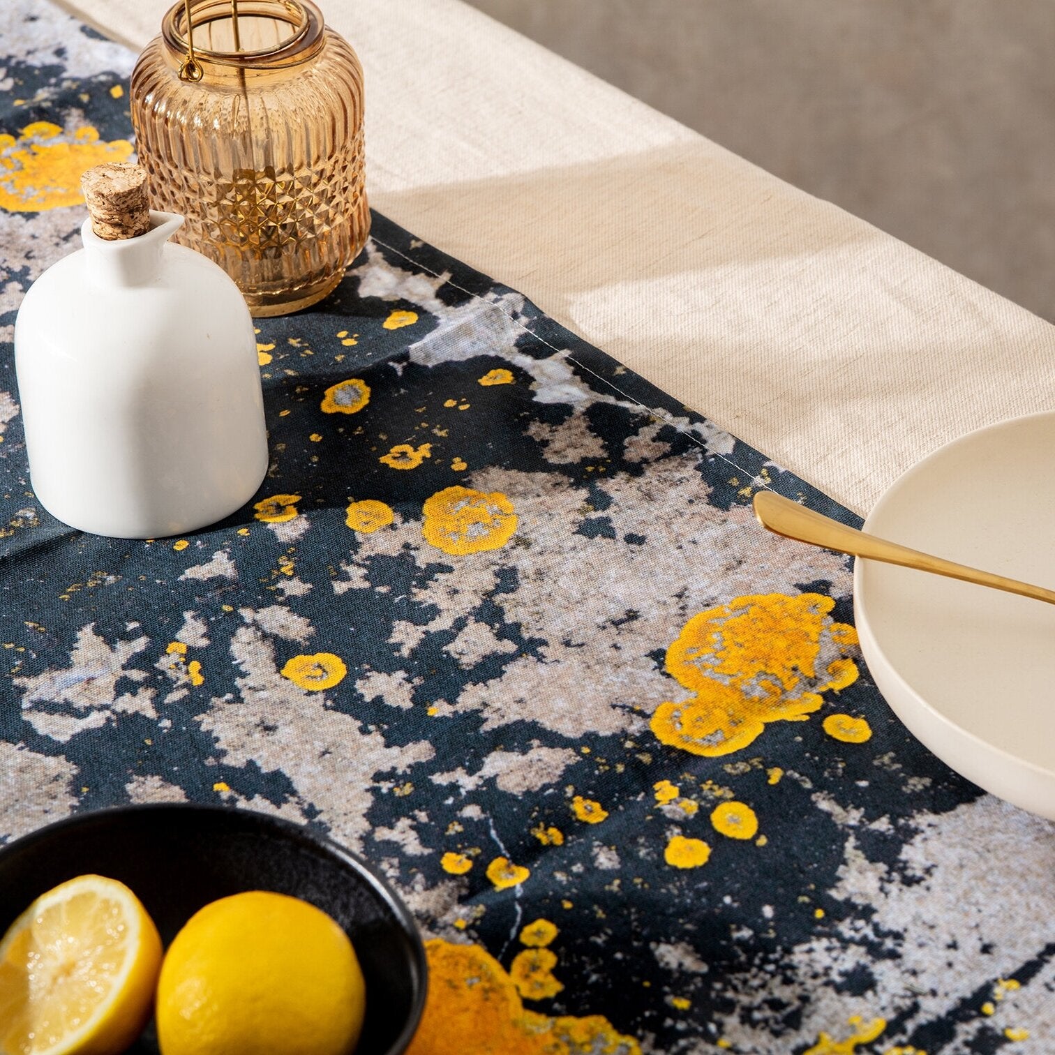 The Nomad Splash Table Runner, Charcoal Grey and Yellow
