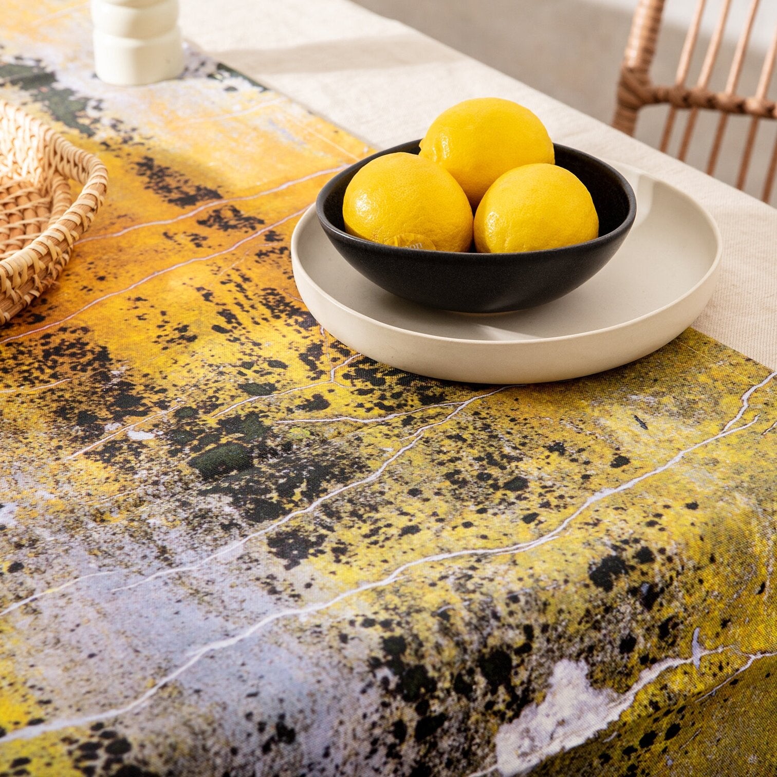 Yellow Ochre and Charcoal Grey Pattern Table Runner - 'Nomad Texture'